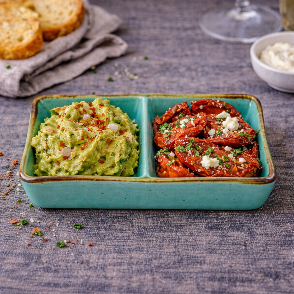 Perfecto para servir aperitivos, salsas, frutos secos, aceitunas o platos principales. Su diseño dividido permite presentar dos opciones diferentes en un mismo recipiente, ideal para comidas informales u ocasiones especiales.