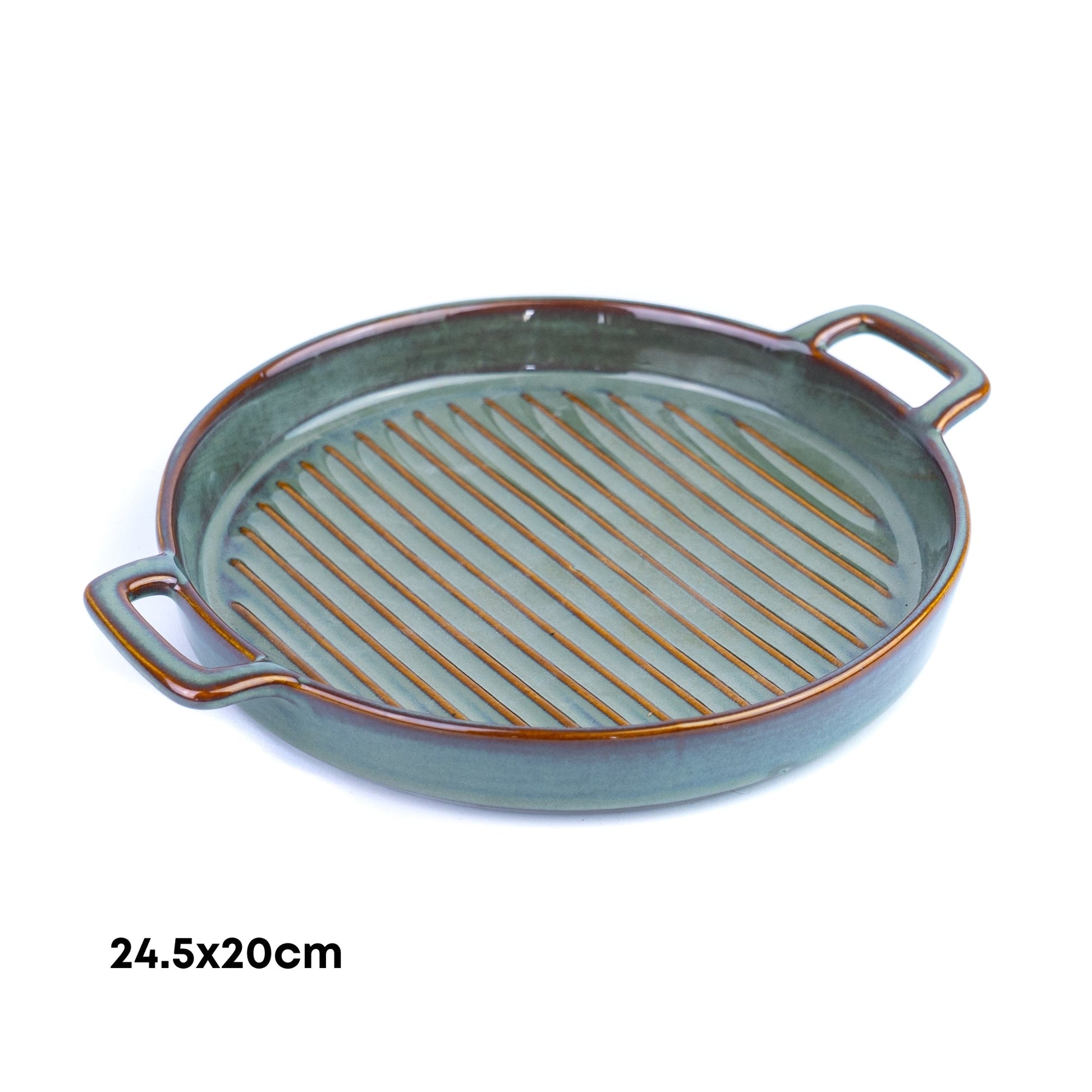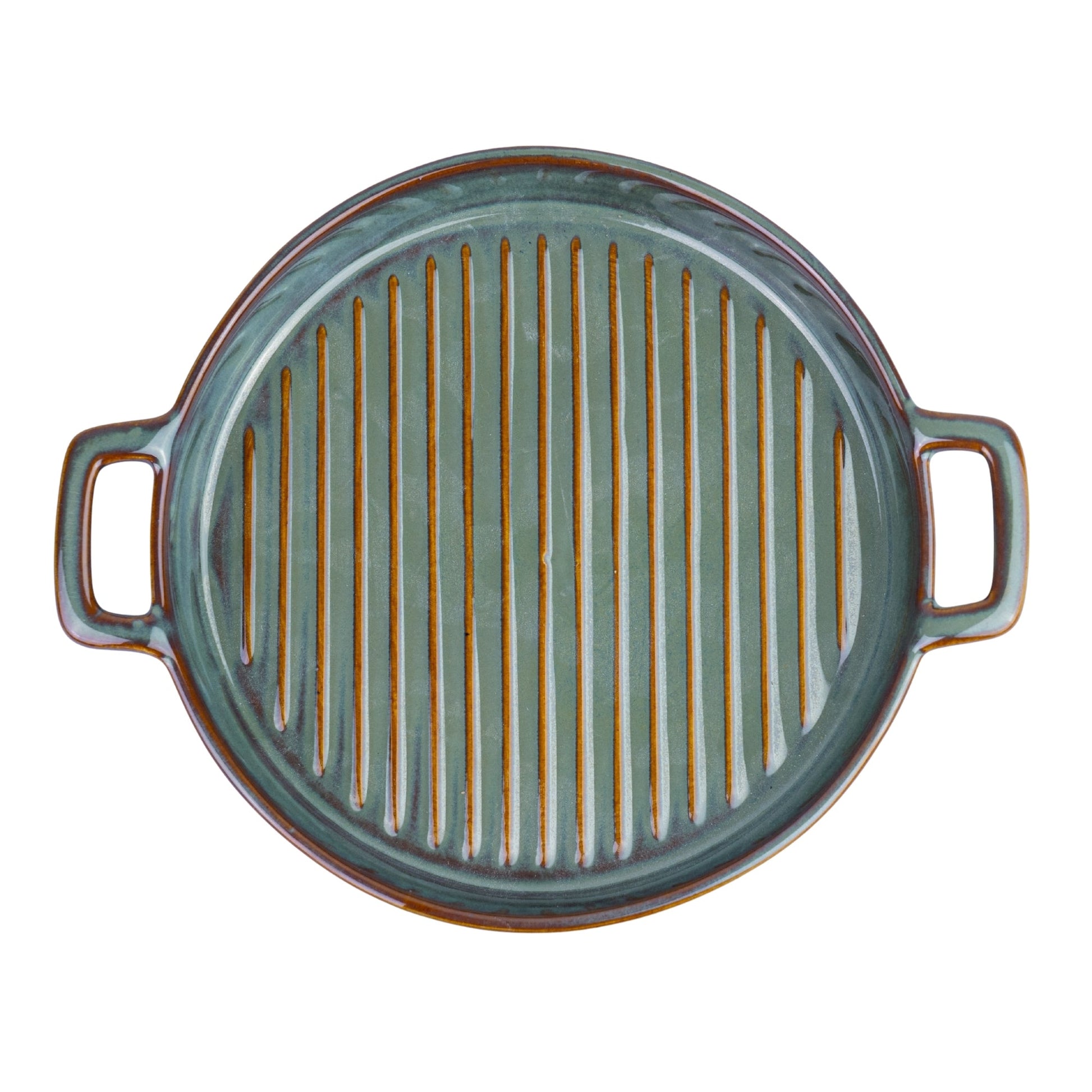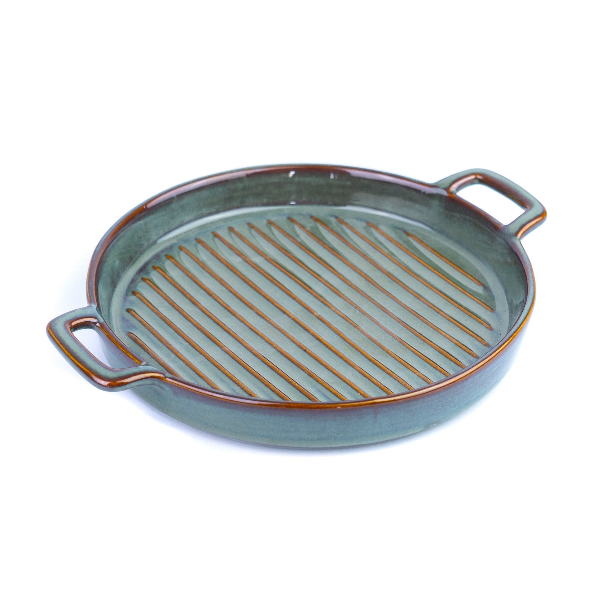 Prato de Cerâmica para Grelhados com Pegas - Verde Jade (24,5x20cm)
