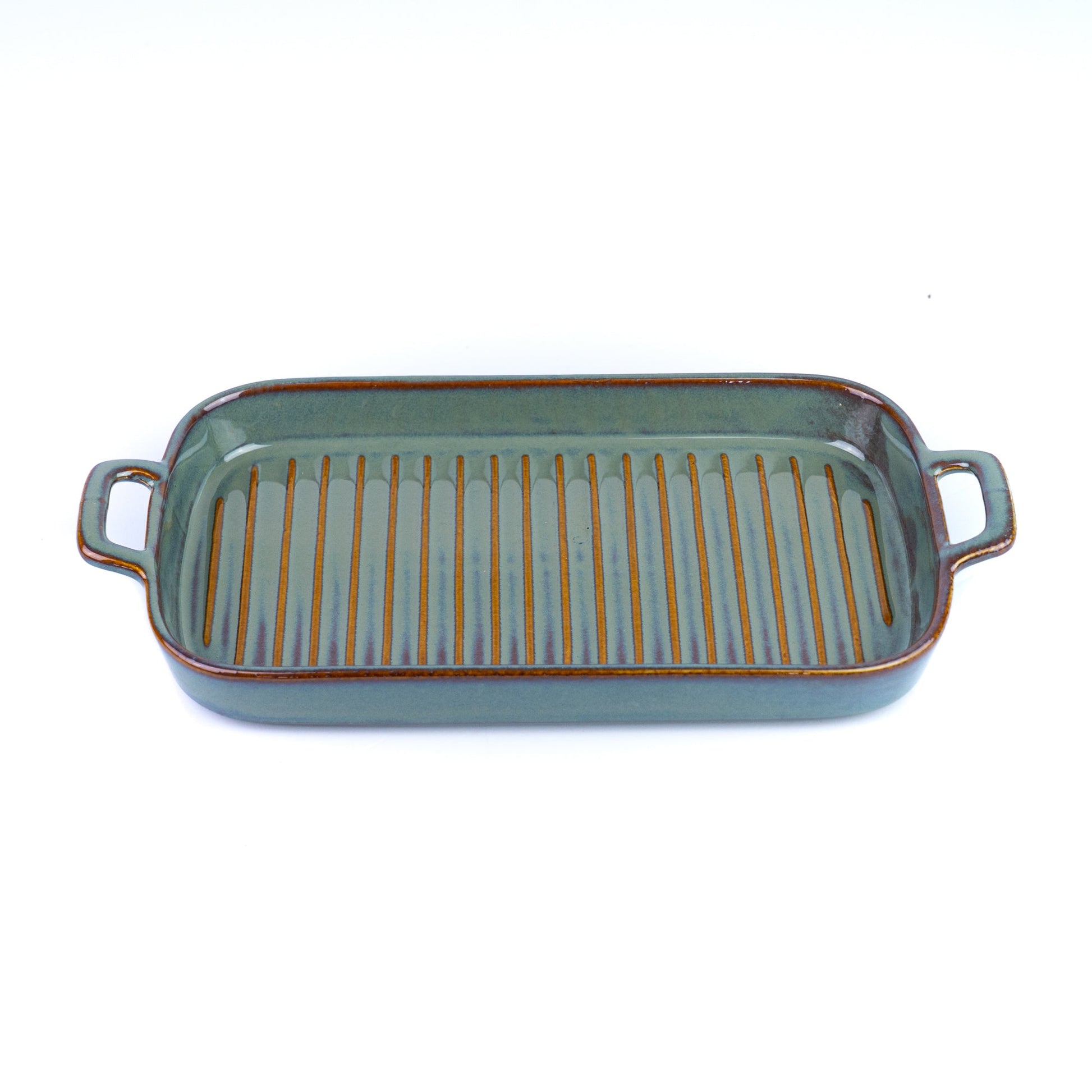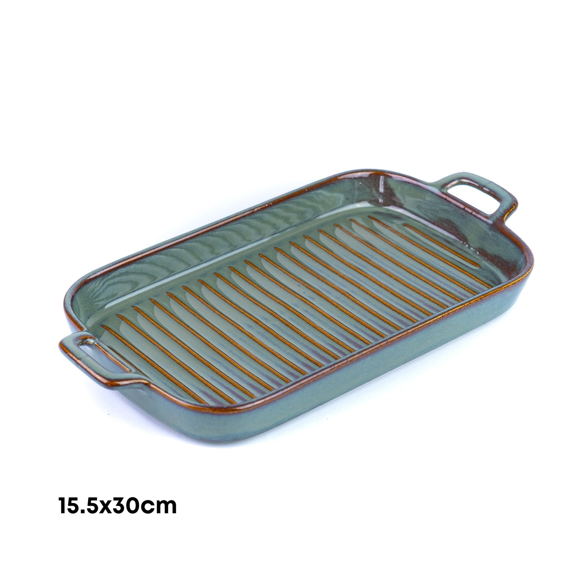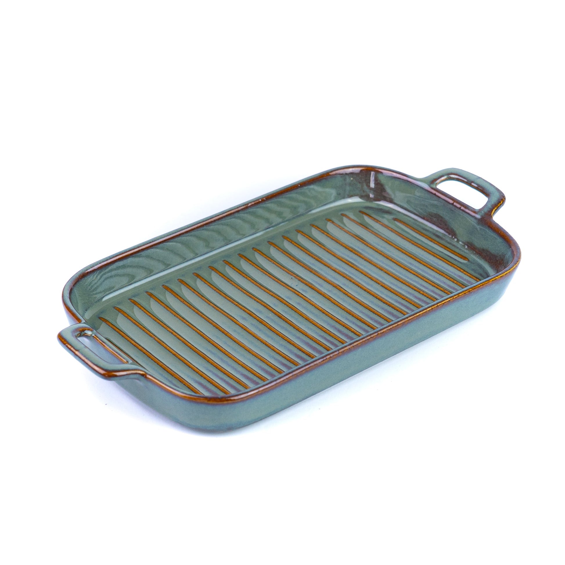 Prato de Cerâmica para Grelhados com Pegas - Verde Jade (15,5x30cm)