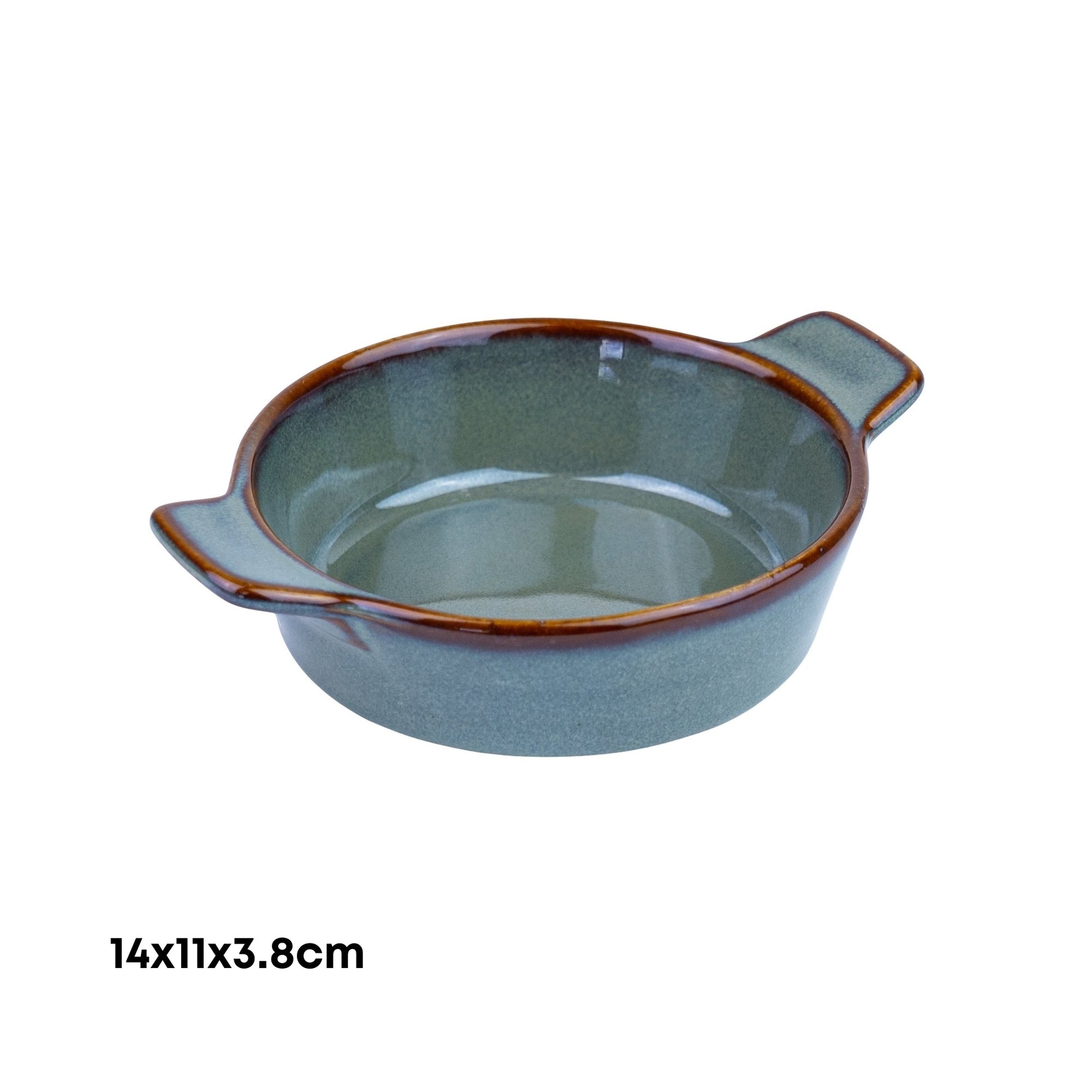 Sirva os seus pratos com elegância com esta encantadora tigela redonda de cerâmica! Apresentando um design sofisticado em verde jade com acabamento liso e duas asas práticas, esta tigela de 14x11x3,8cm é perfeita para sopas, aperitivos, sobremesas, molhos e muito mais.