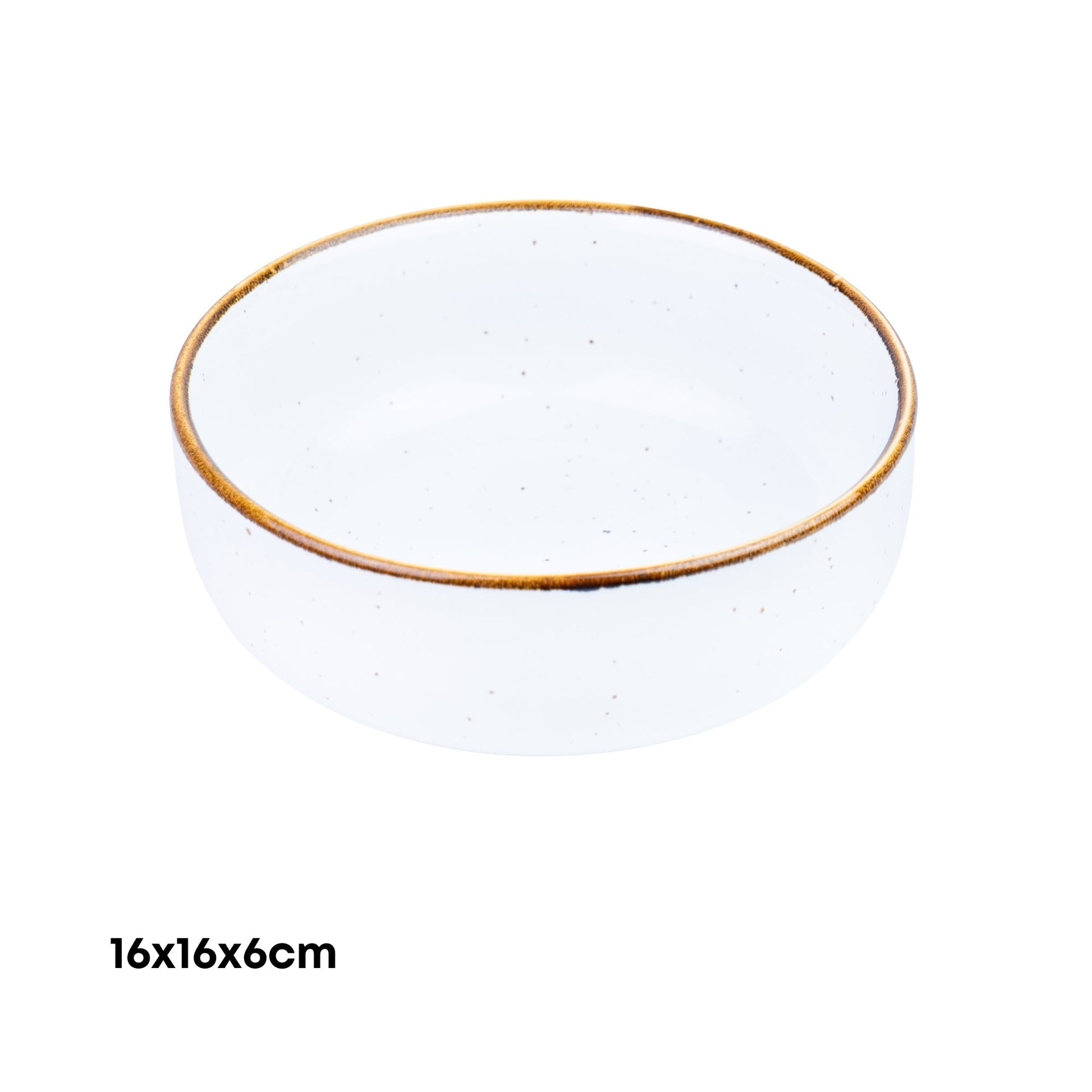 Sirva os seus pratos com elegância com esta encantadora tigela média de cerâmica! Apresentando um design sofisticado em branco puro com borda dourada elegante, esta tigela de 16x16x6cm é perfeita para sopas, saladas, aperitivos, sobremesas e muito mais.