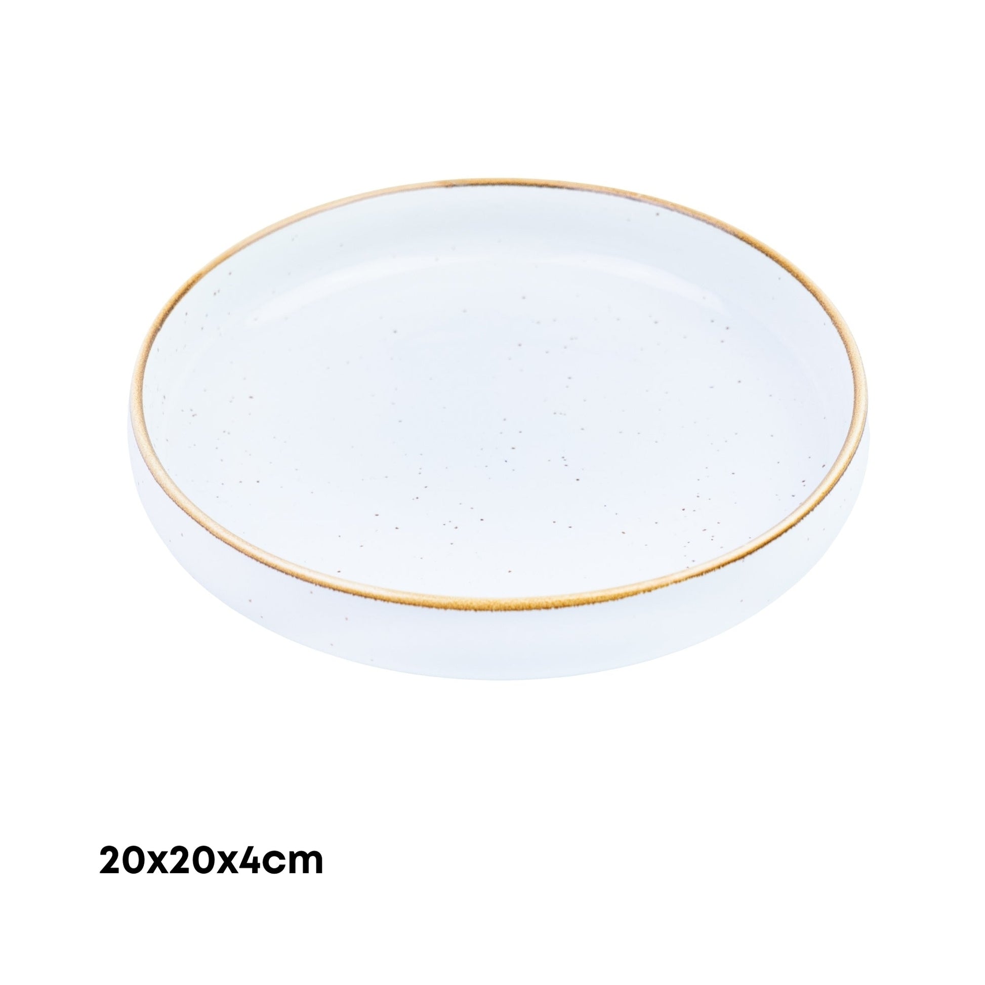 Sirva os seus pratos com elegância com esta encantadora tigela redonda funda de cerâmica! Apresentando um design sofisticado em branco puro com borda dourada elegante, esta tigela de 20x20x4cm é perfeita para sopas, saladas, massas, sobremesas e muito mais.