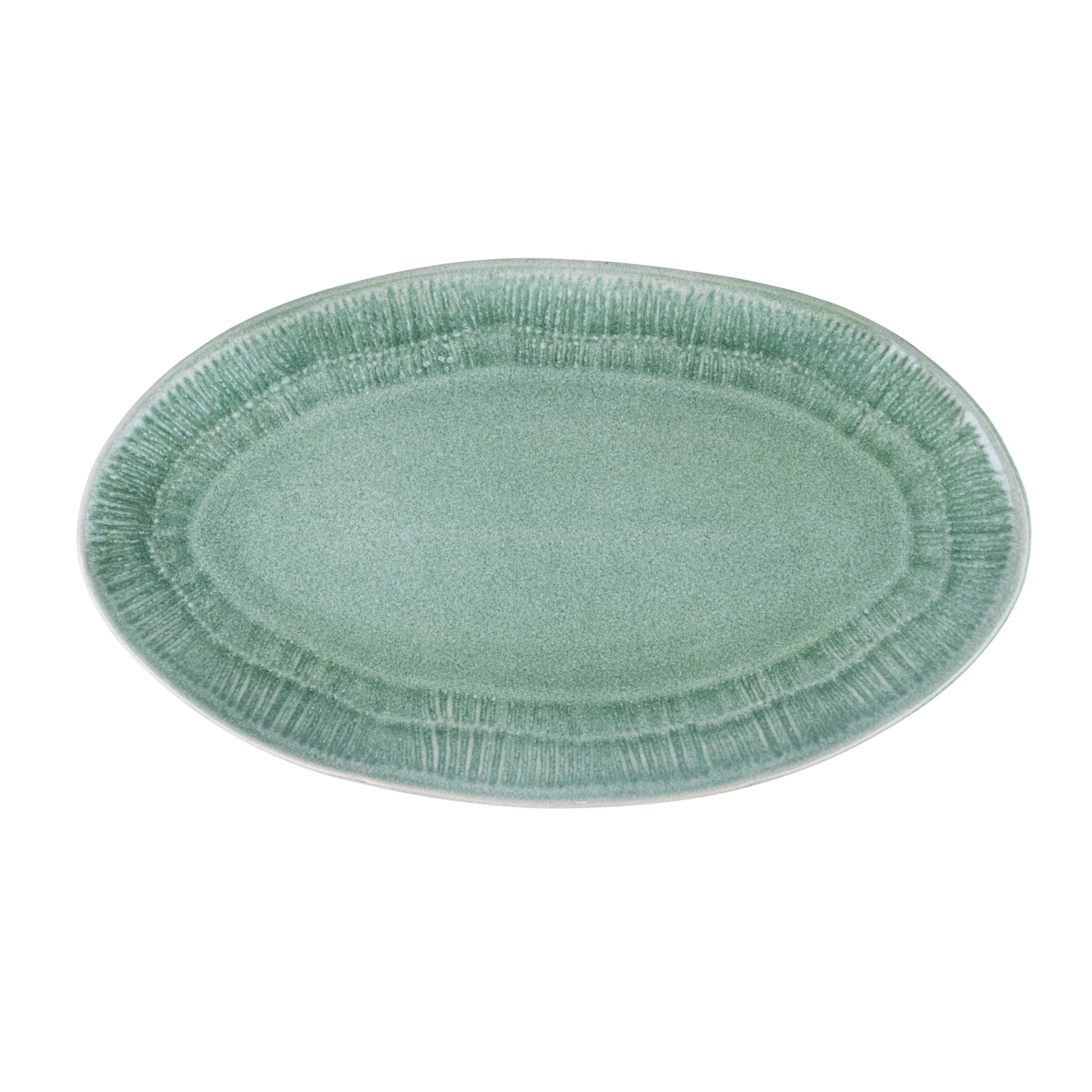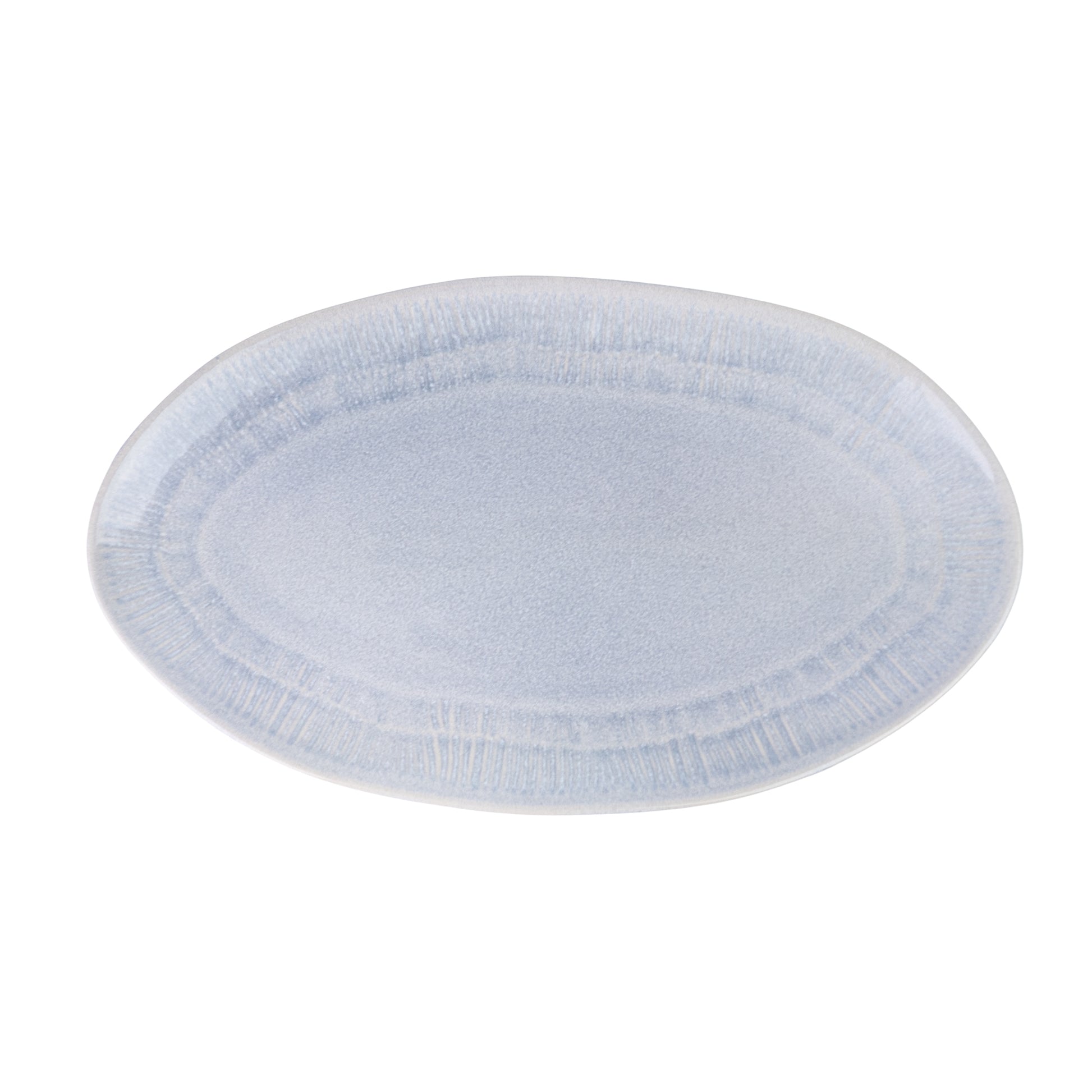 Cada travessa é fabricada em cerâmica de alta qualidade com acabamento speckled (pontos naturais) e apresenta um design moderno com textura radiante na borda que cria profundidade e interesse visual. O formato oval é ideal para apresentações alongadas e sofisticadas à mesa.