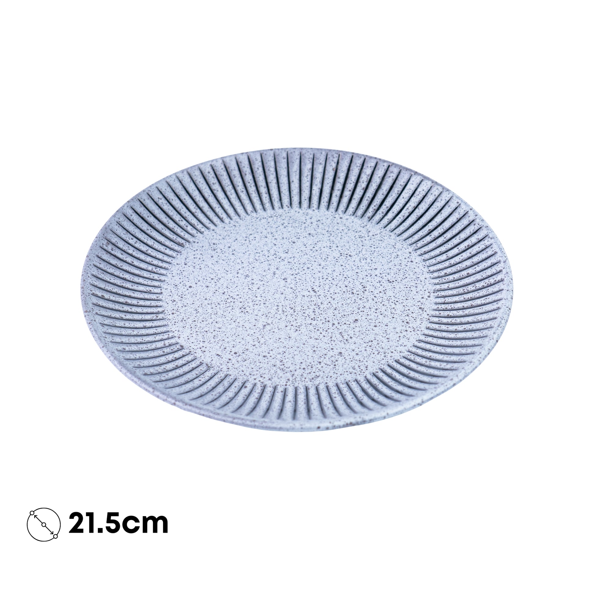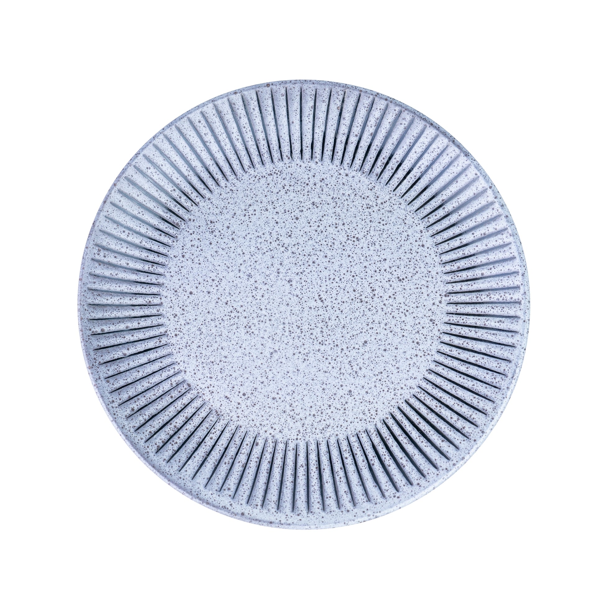 Fabricado em cerâmica de alta qualidade com acabamento speckled (pontos naturais), este prato apresenta um design moderno com linhas verticais radiantes na borda que criam um padrão sofisticado e contemporâneo. O centro azul-cinza liso proporciona o fundo perfeito para realçar os seus pratos.