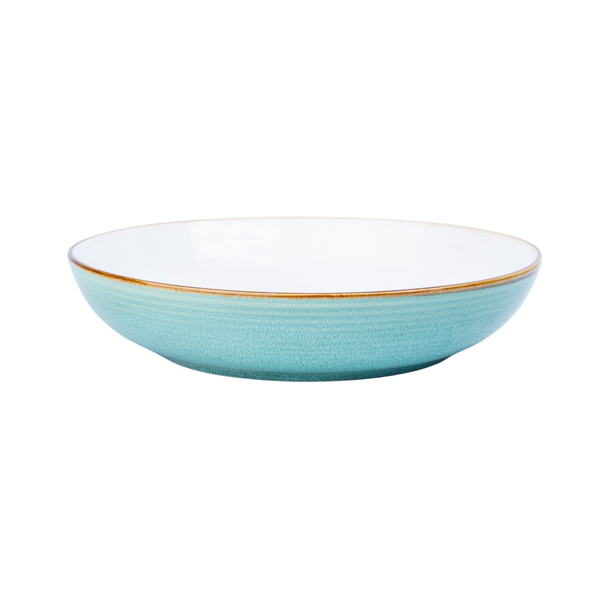 Prato Fundo Redondo em Cerâmica - Interior Branco e Exterior Turquesa 22cm