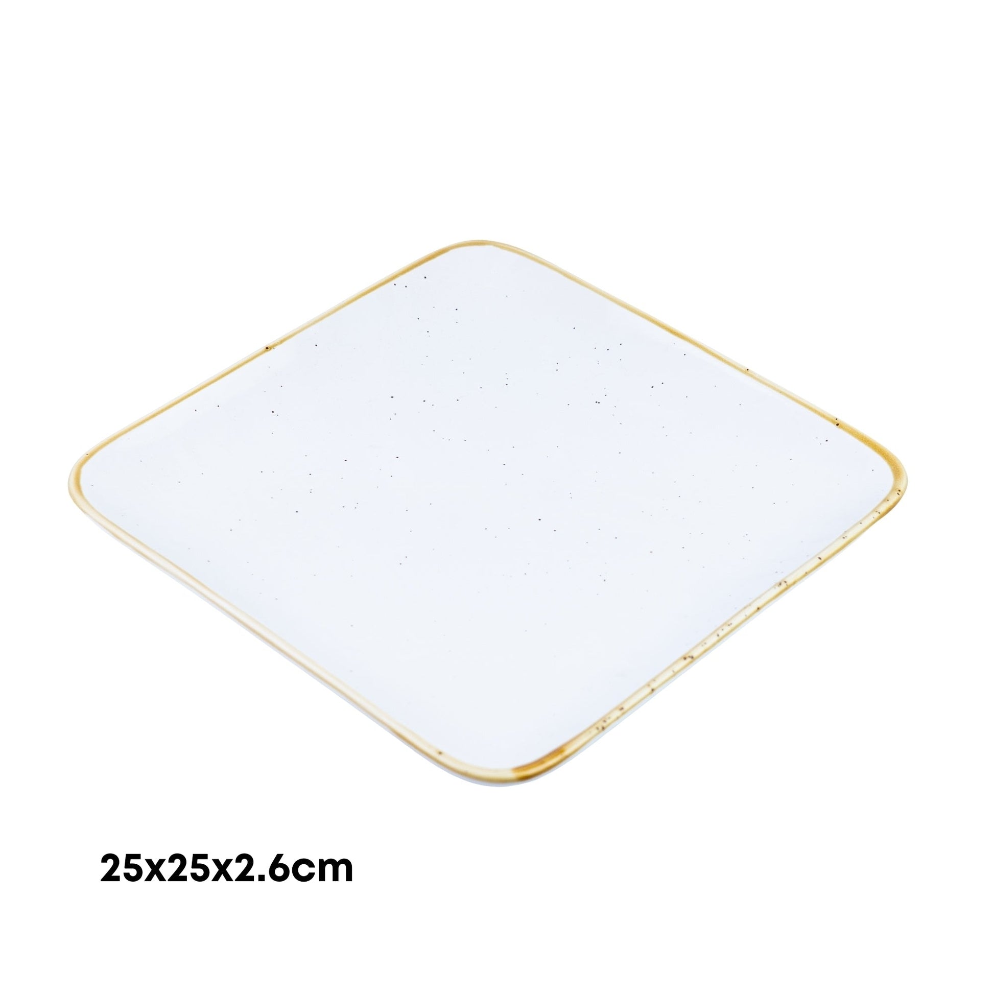 Apresente os seus pratos com elegância com este magnífico prato quadrado extra grande de cerâmica! Apresentando um design sofisticado em branco puro com borda dourada elegante, este prato de 25x25x2,6cm é perfeito para pratos principais, travessas, aperitivos, entradas e muito mais.