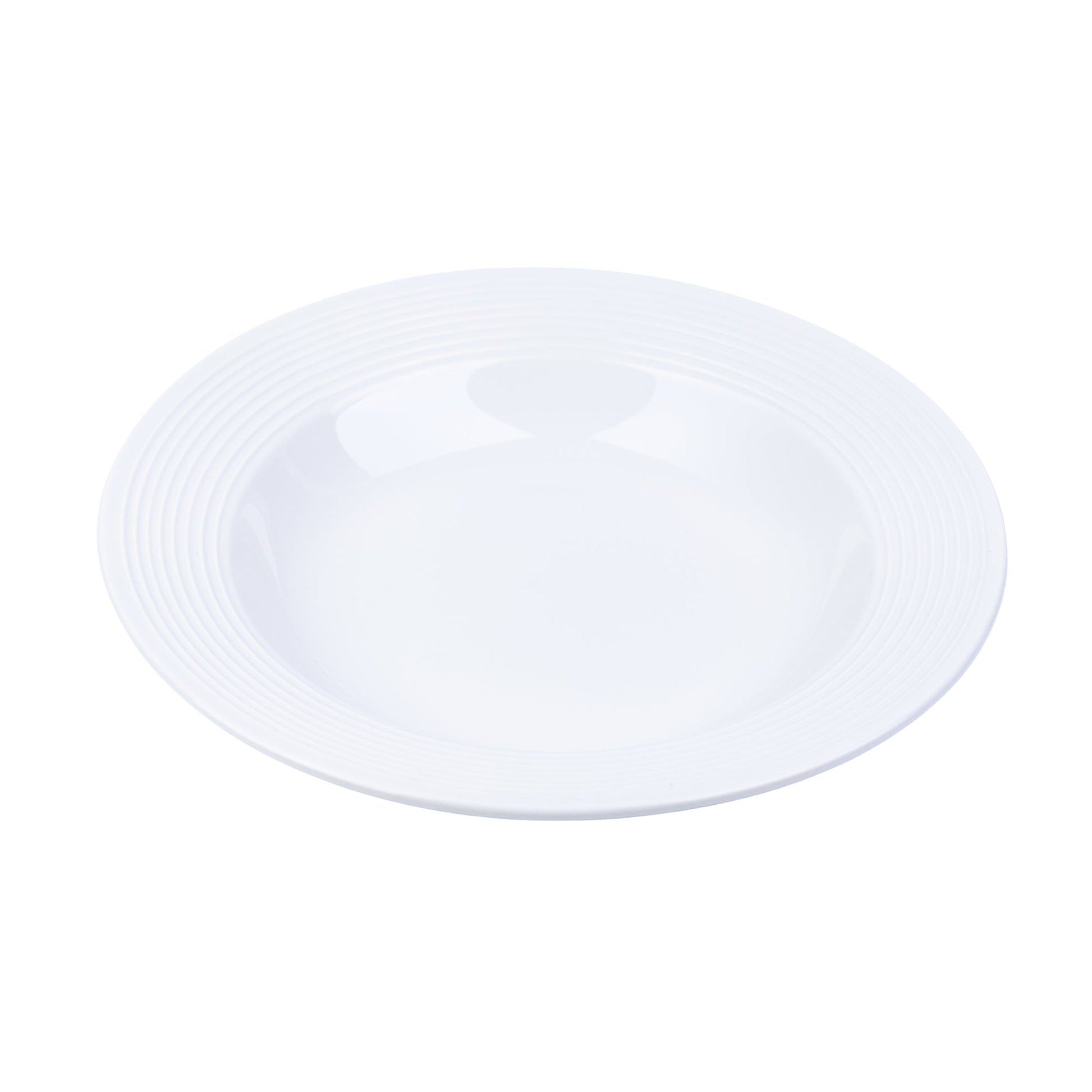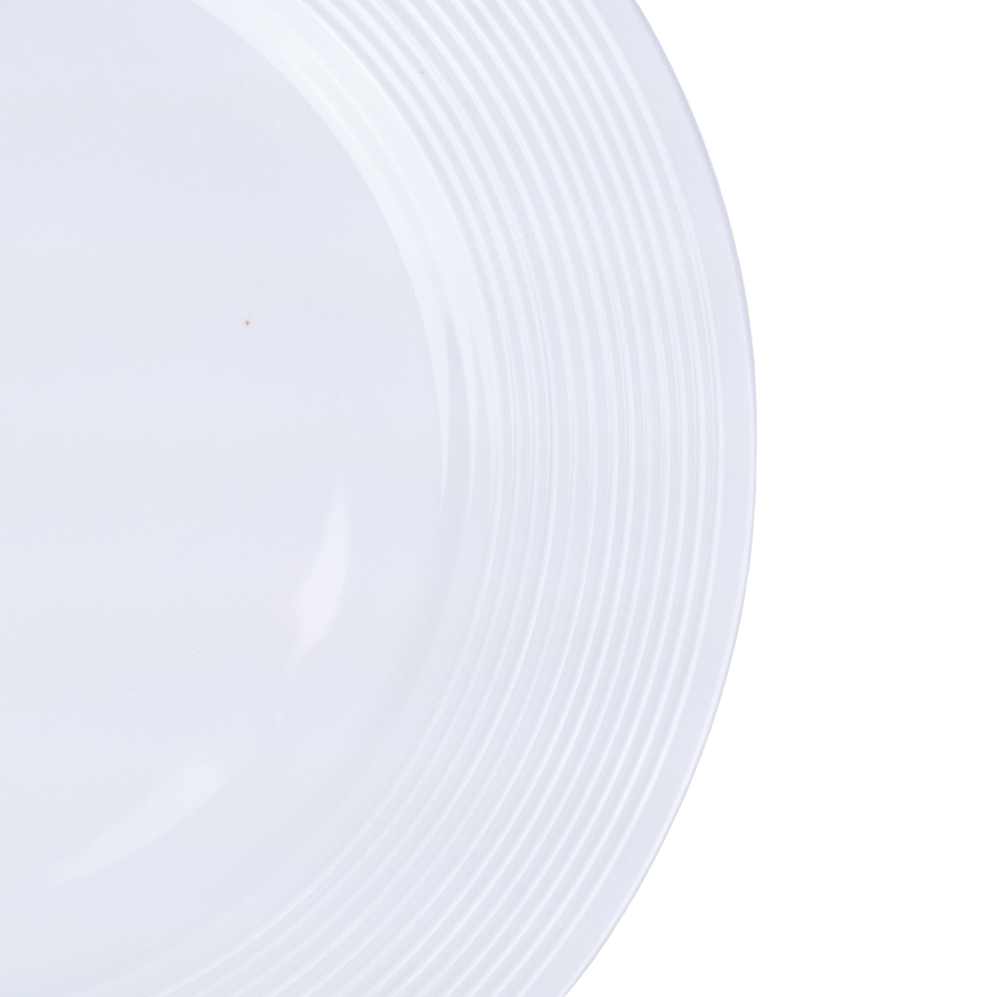 Este conjunto destaca-se pelo seu design minimalista elegante que cria um efeito visual subtil e refinado em cada peça. A textura em relevo com linhas concêntricas delicadas adiciona profundidade e interesse visual ao branco puro, criando um design atemporal e versátil. O acabamento totalmente branco proporciona uma tela perfeita para realçar a beleza dos seus alimentos, tornando cada refeição numa experiência visual especial e elegante.